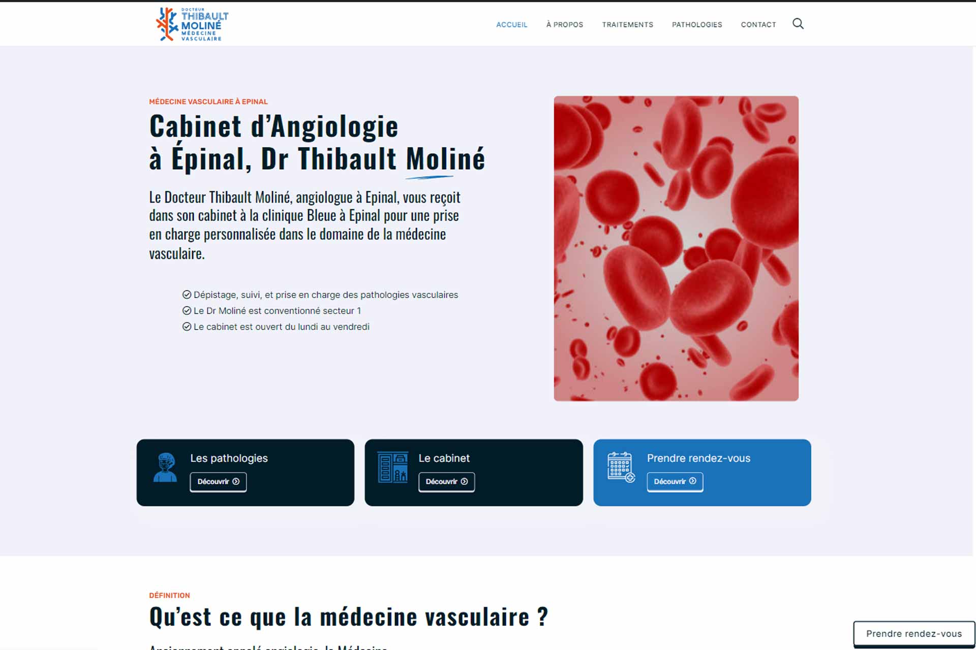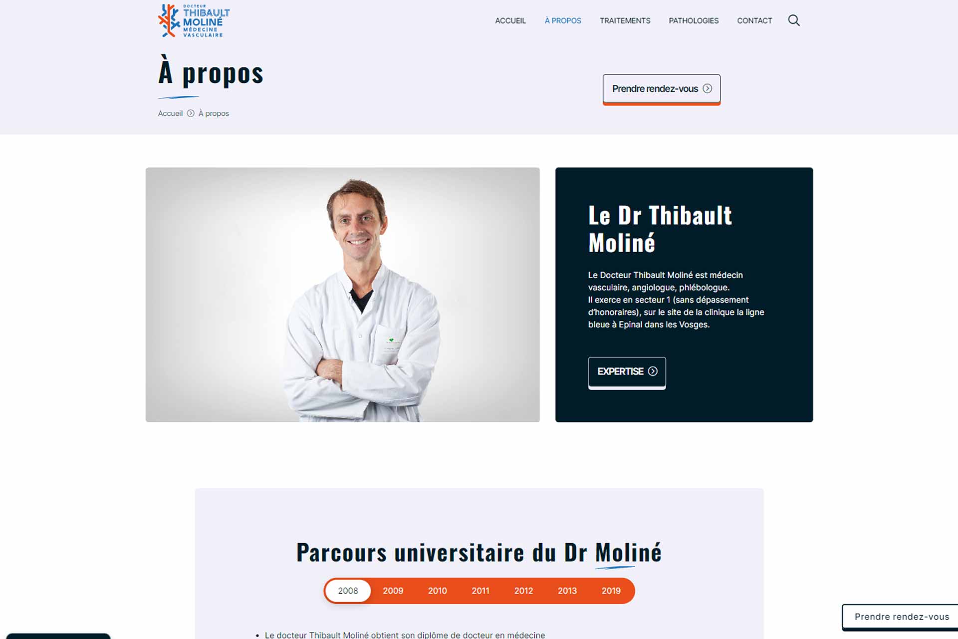 Nous sommes fiers d’avoir réalisé le site professionnel de Thibault Moliné, angiologue reconnu à Epinal. Sur ce site, les patients et les visiteurs peuvent trouver des informations détaillées sur les services médicaux, ainsi que des conseils pratiques pour la gestion de la santé vasculaire.