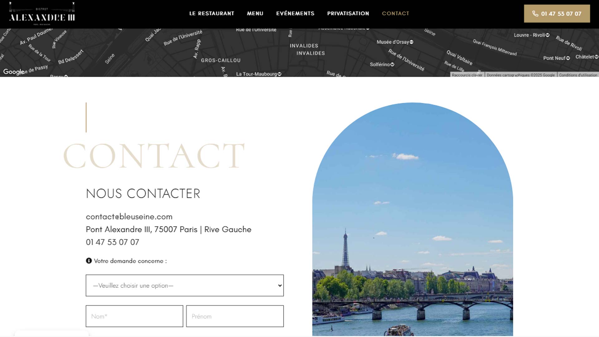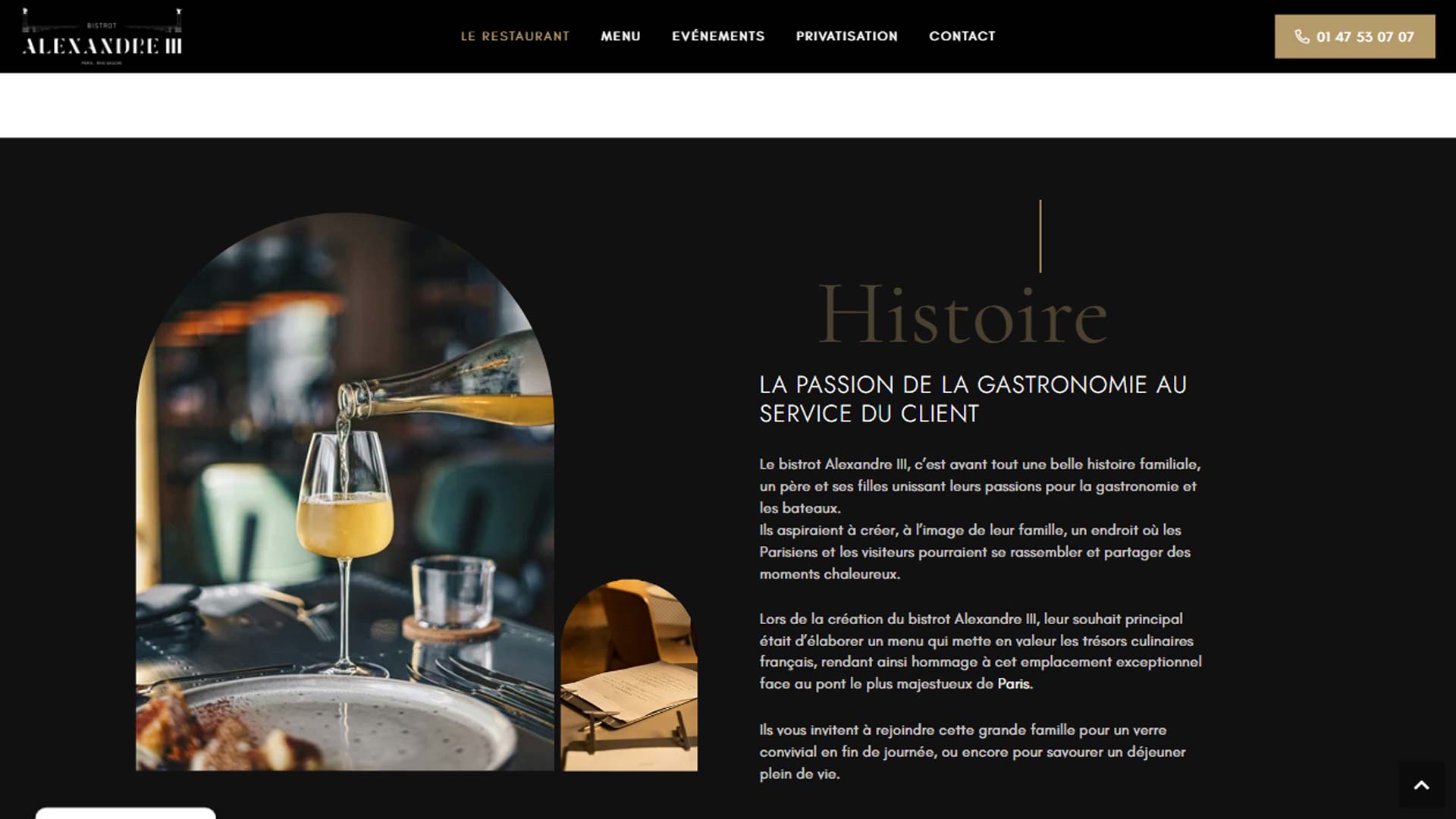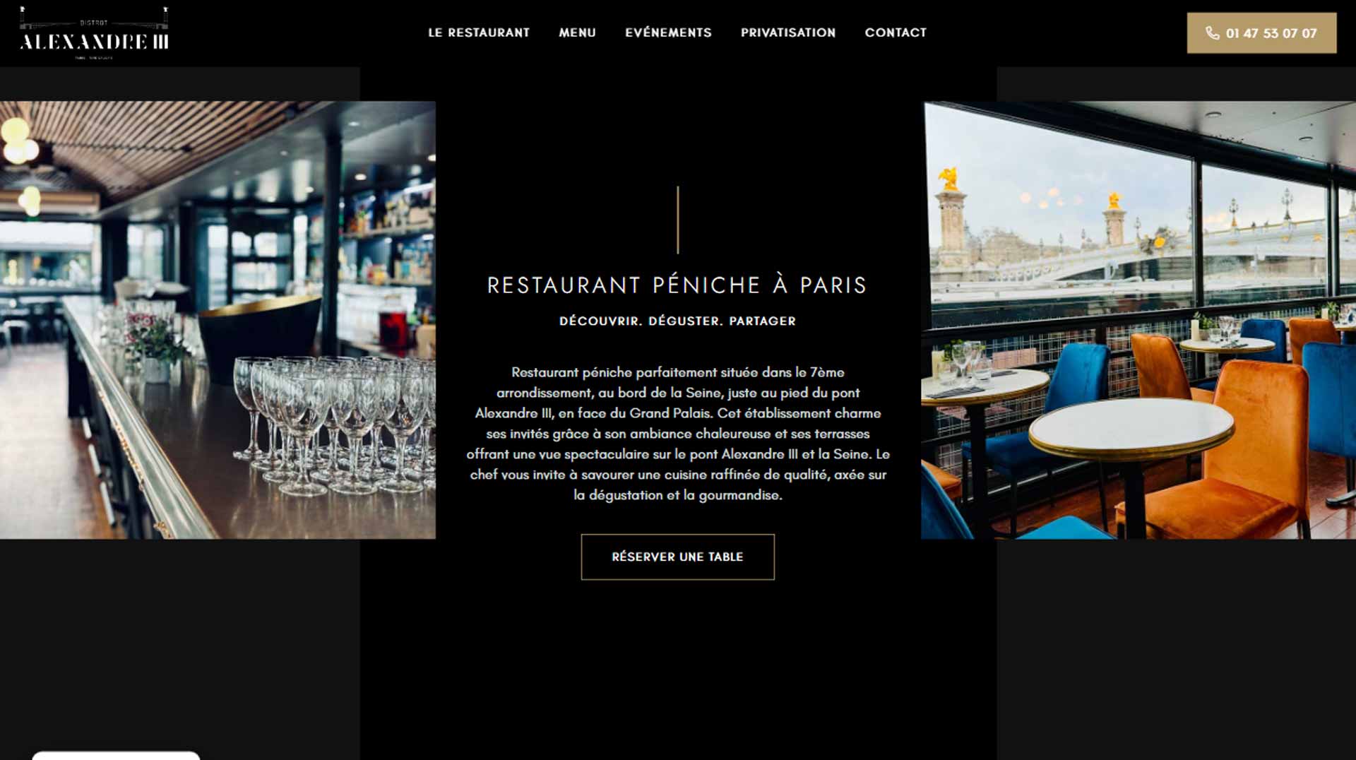 e site du Bistrot Alexandre III est la vitrine en ligne d’un restaurant unique situé sur une péniche au bord de la Seine, à Paris. Ce lieu exceptionnel propose une expérience culinaire raffinée, alliant ambiance chaleureuse et vue imprenable sur le Pont Alexandre III.