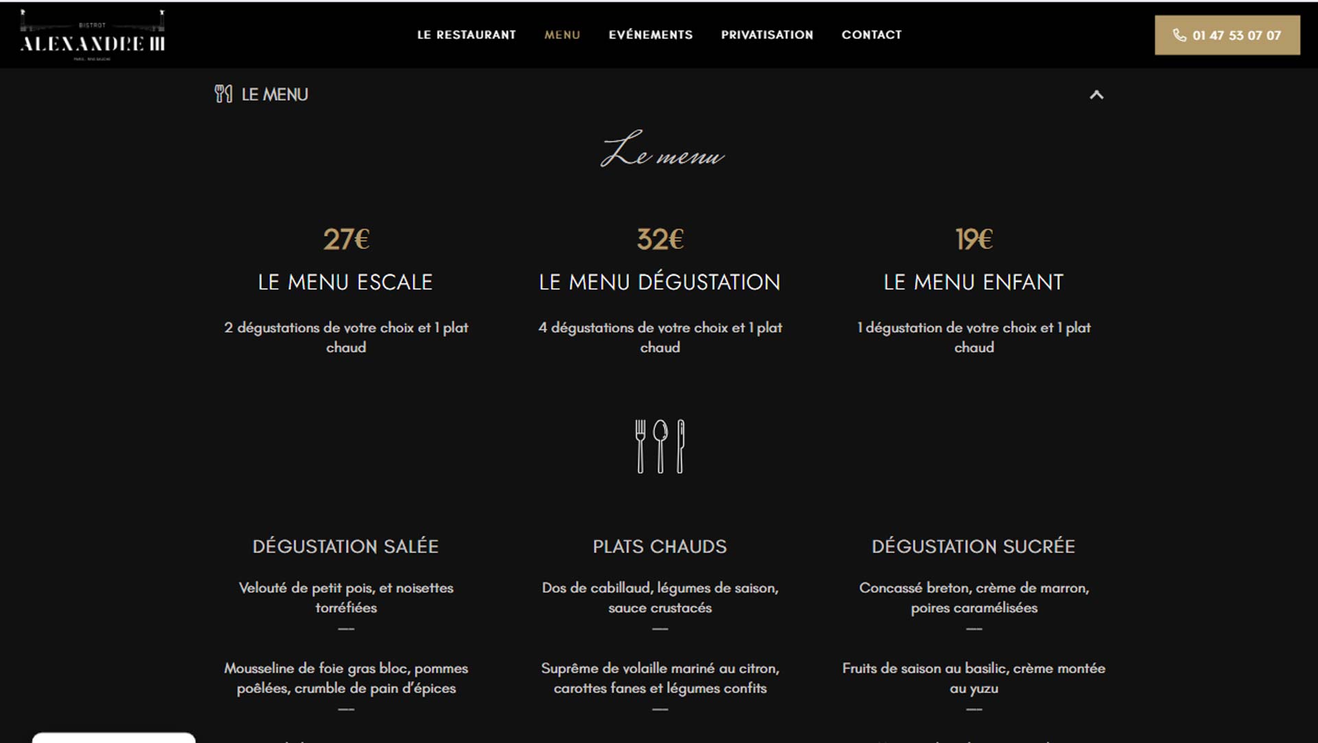 Le site met en lumière l’ambiance chaleureuse et authentique du Bistrot Alexandre III, tout en offrant une navigation fluide et un design responsive. Les visiteurs peuvent découvrir une présentation détaillée du menu, une galerie de photos mettant en avant l’atmosphère et les plats, ainsi qu’un système de réservation simple et efficace.