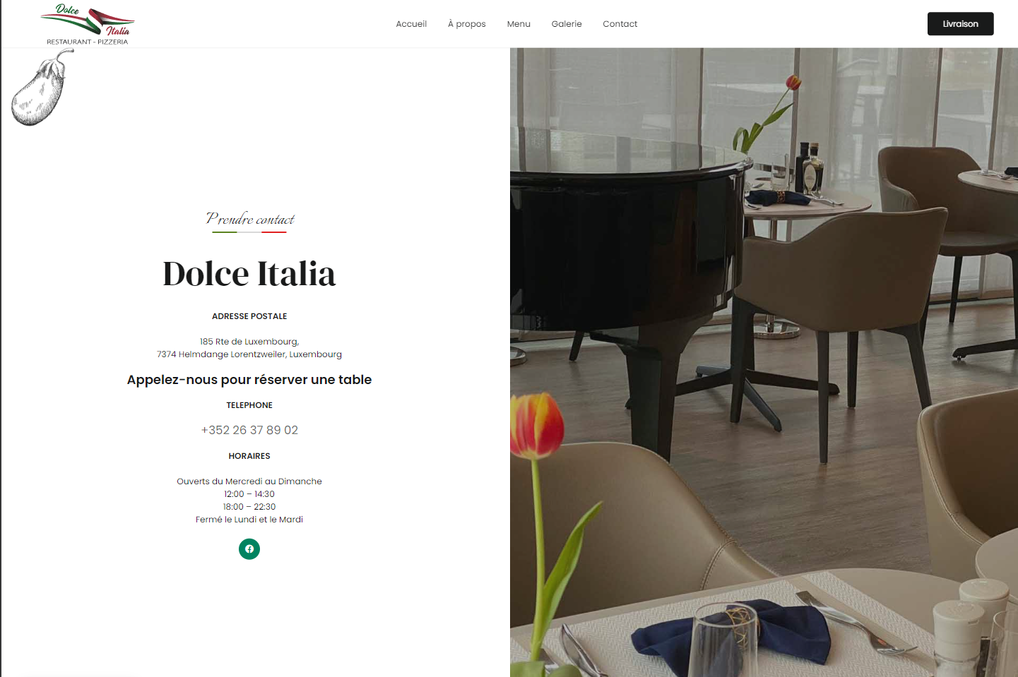 Le site Dolce Italia est la vitrine en ligne d’un restaurant italien authentique situé au Luxembourg. Dolce Italia propose une expérience culinaire mêlant tradition et modernité, avec une carte riche en spécialités italiennes élaborées à partir de produits frais et de qualité.